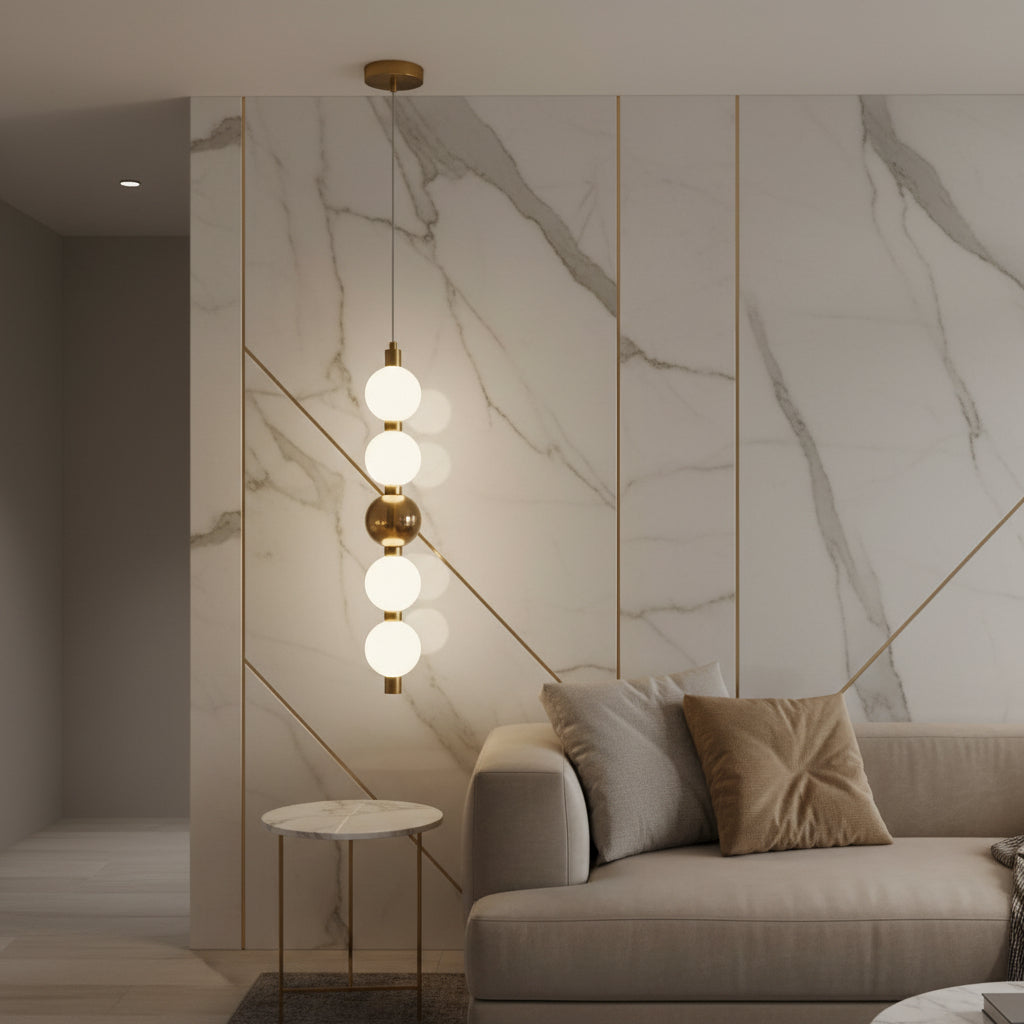 Modern Globe Pendant Light | 5-Ball Frosted Glass Hanging Lamp | Brass Finish | 3-Color LED