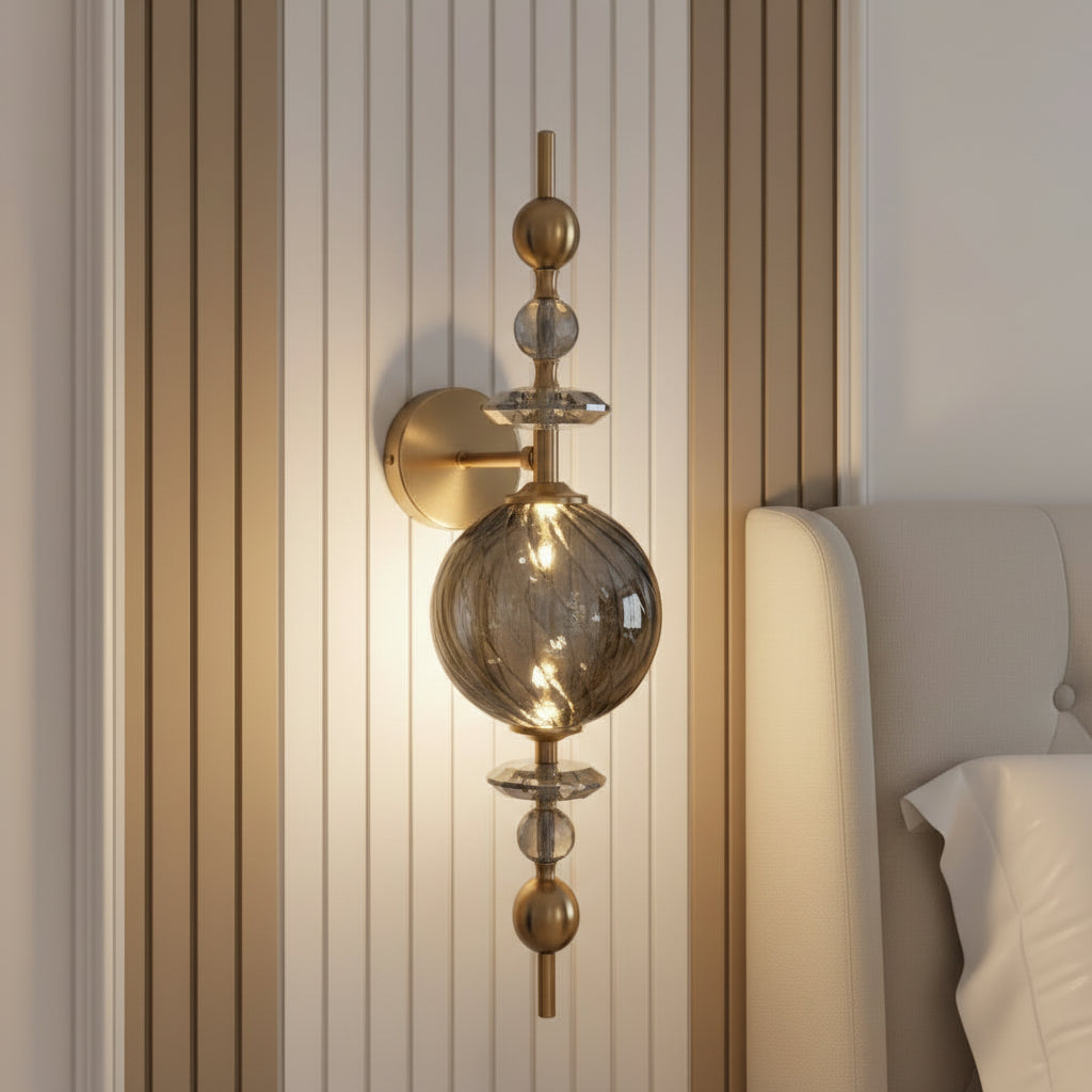 Modern Crystal Wall Light | Smoked Glass LED Sconce | Brass Finish | 3-Color LED Decorative Light