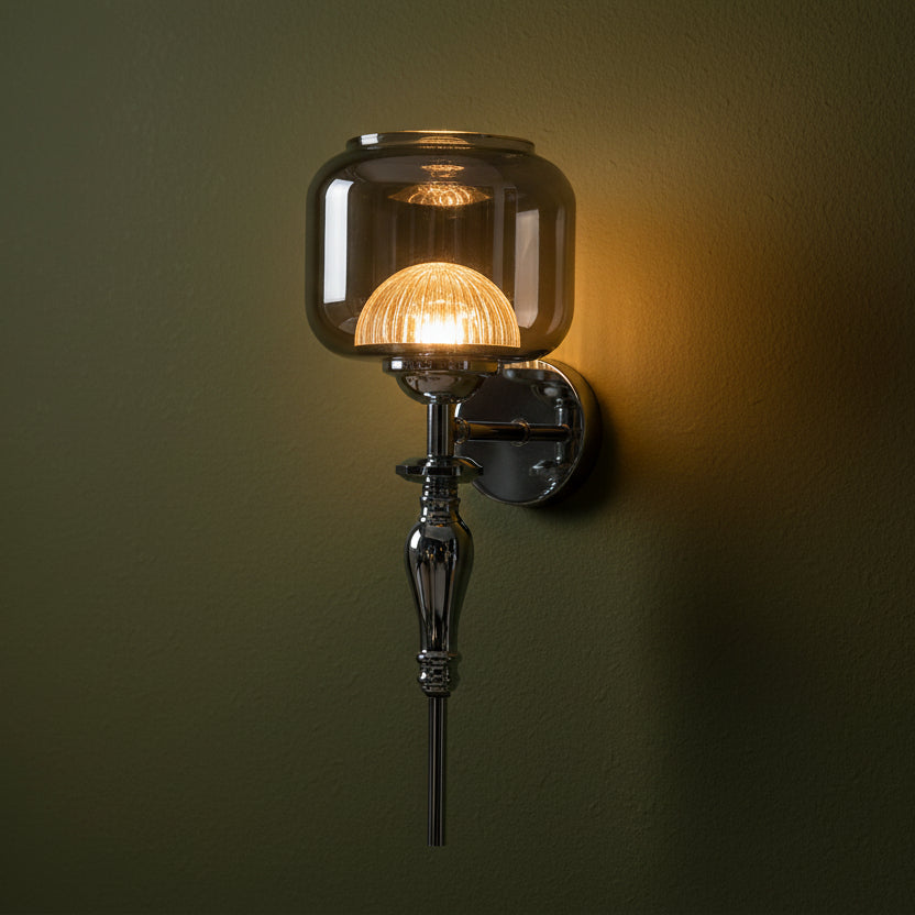 Modern Wooden Rod Smoked Glass Wall Light | Black Metal Wall Sconce | Warm Ambient Decorative Lamp