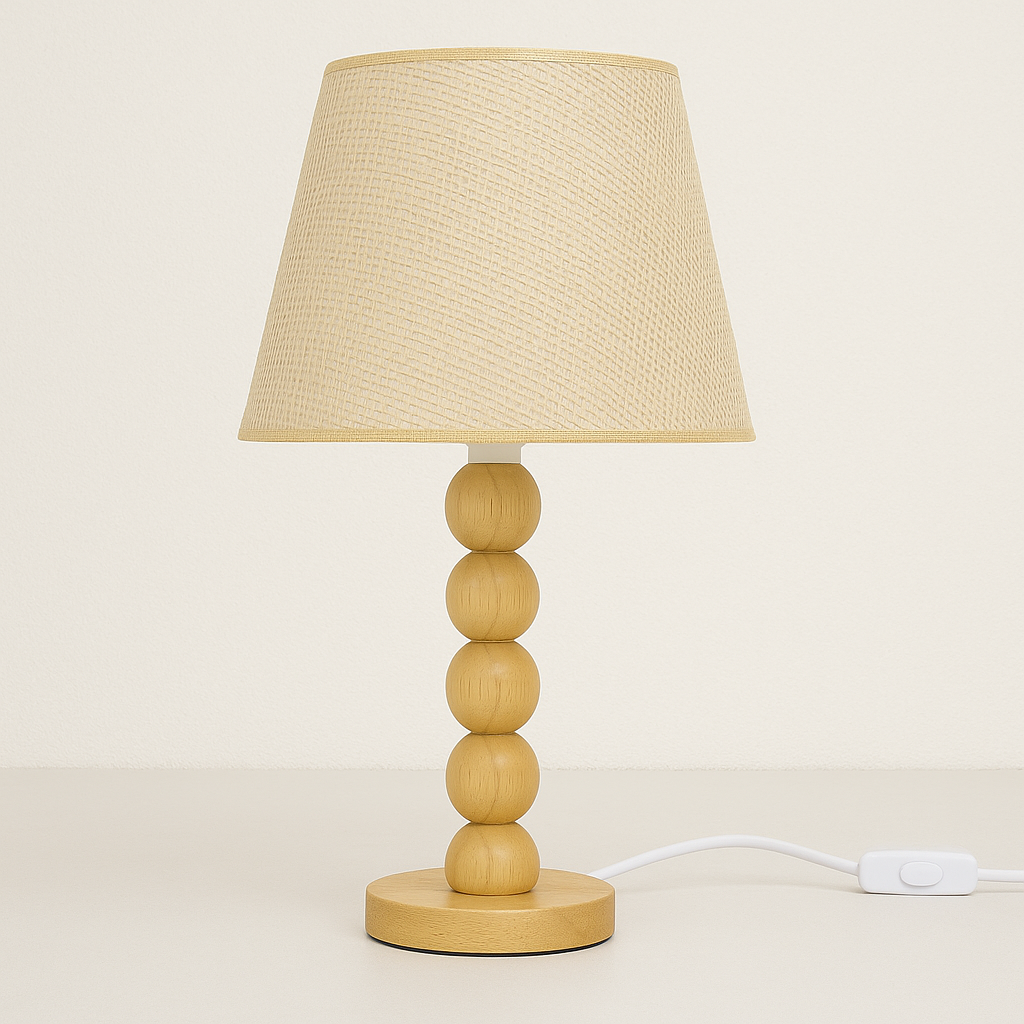 Wooden Table Lamp with Woven Fabric Shade | Bedside & Living Room Light