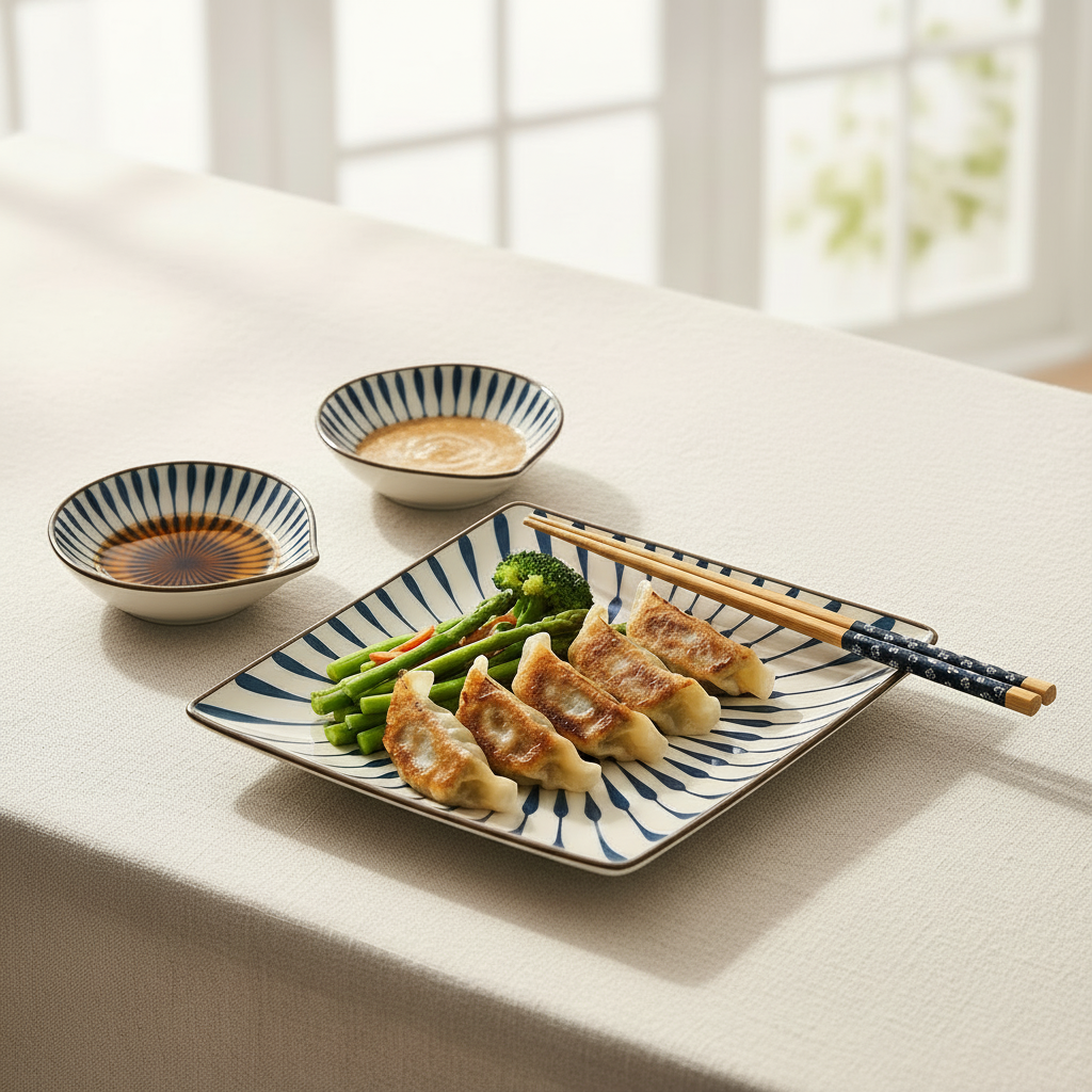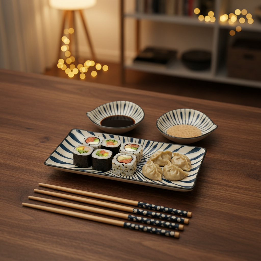 Japanese Dining Set – Ceramic Sushi Plate, 2 Dipping Bowls & 4 Chopsticks | Premium Gift Box