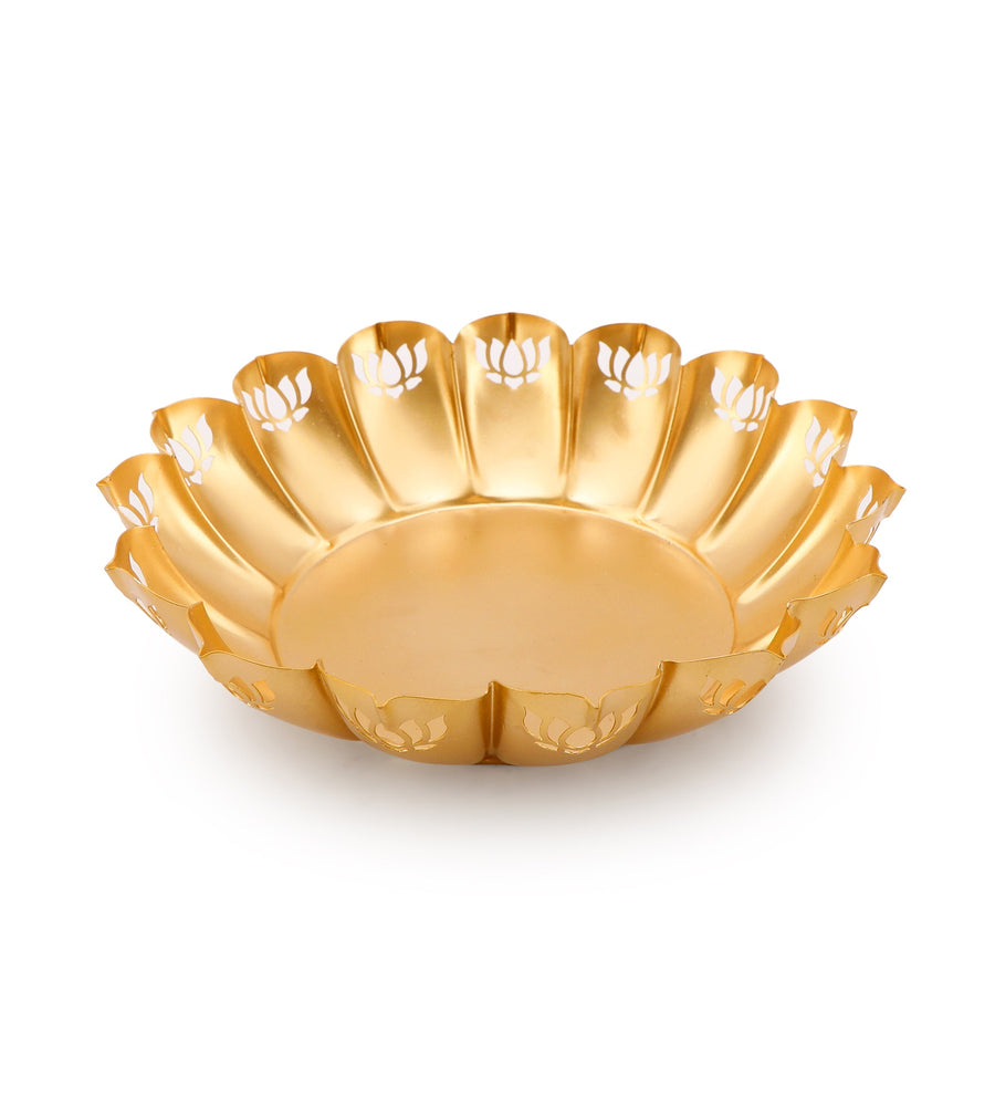 Gold plated aluminium urli should never be immersed in water for a long period of time as this can cause damage to the gold plating. Handle the urli with care to avoid any damage or scratches that can cause a degradation of its quality.