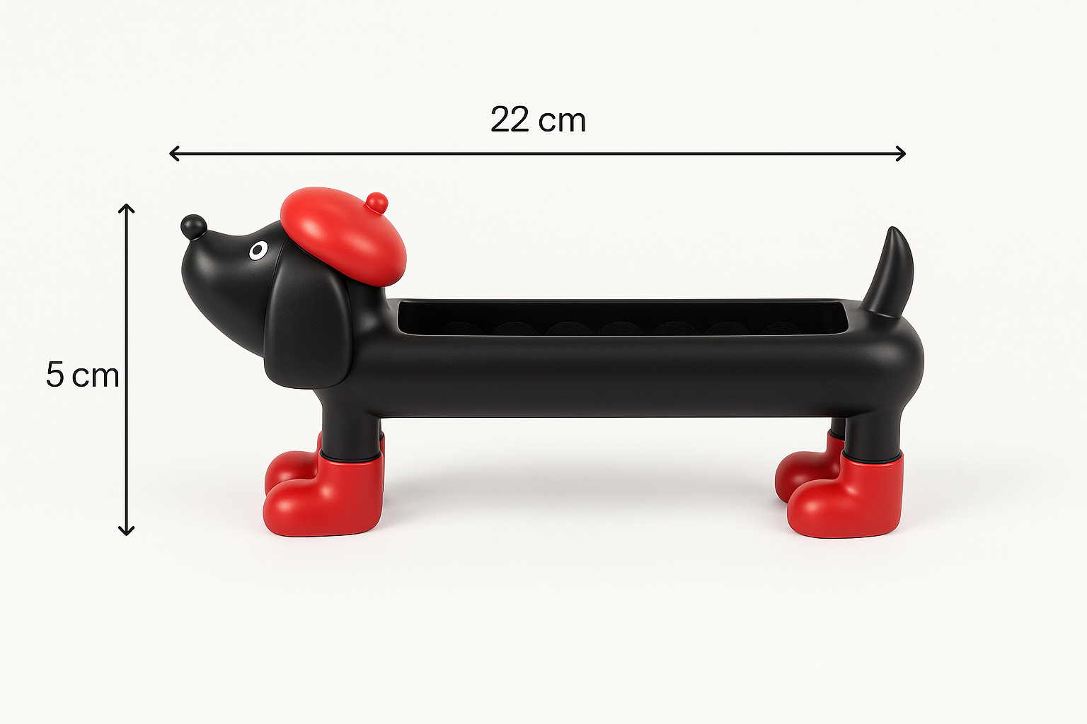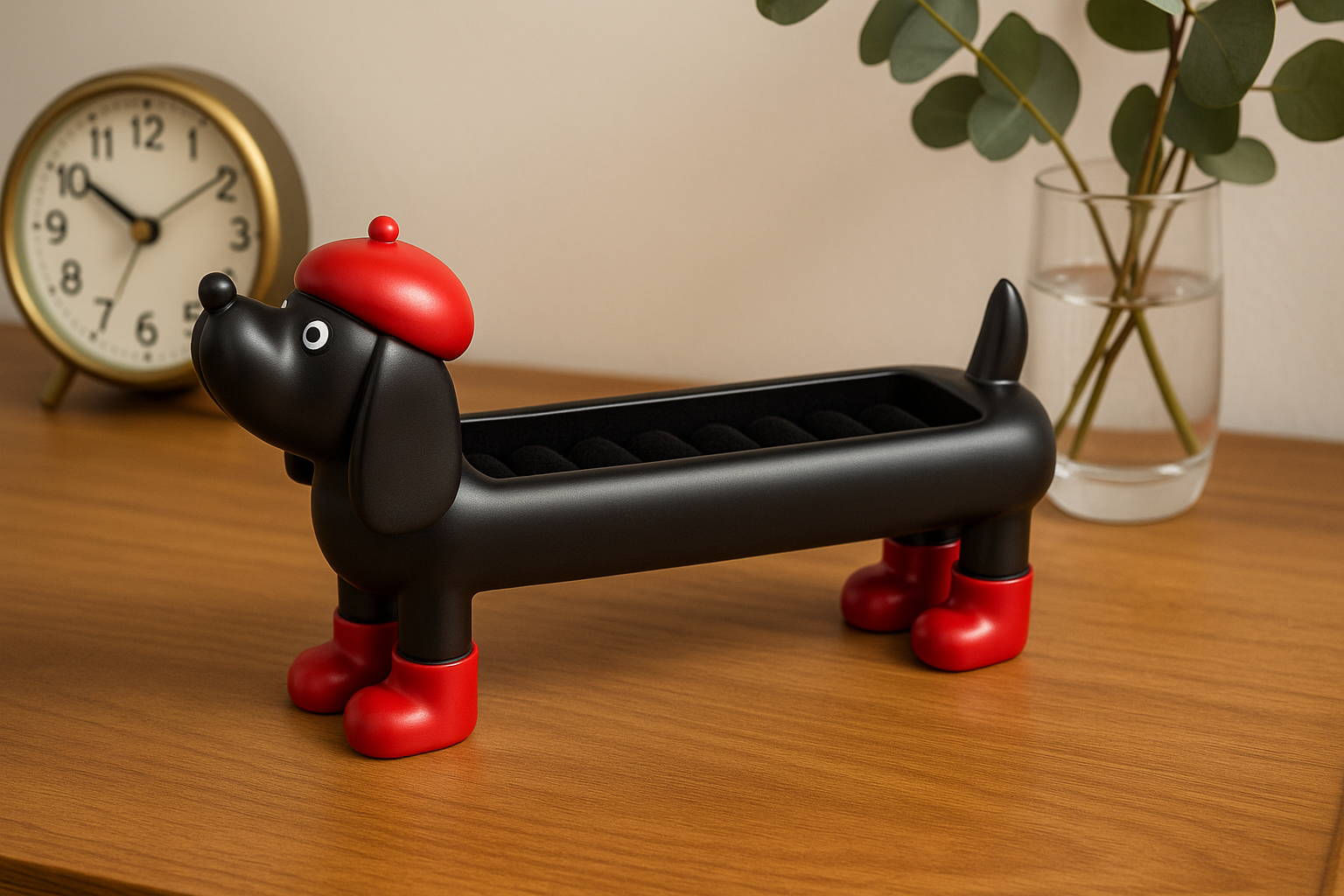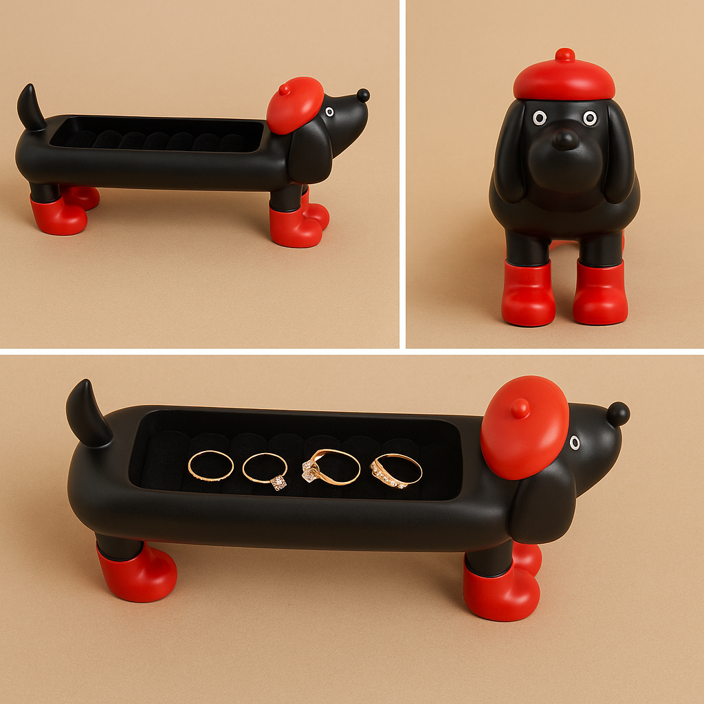 Charming Design: Playful dachshund shape with red beret and boots adds a quirky yet elegant touch to your dresser or vanity.
